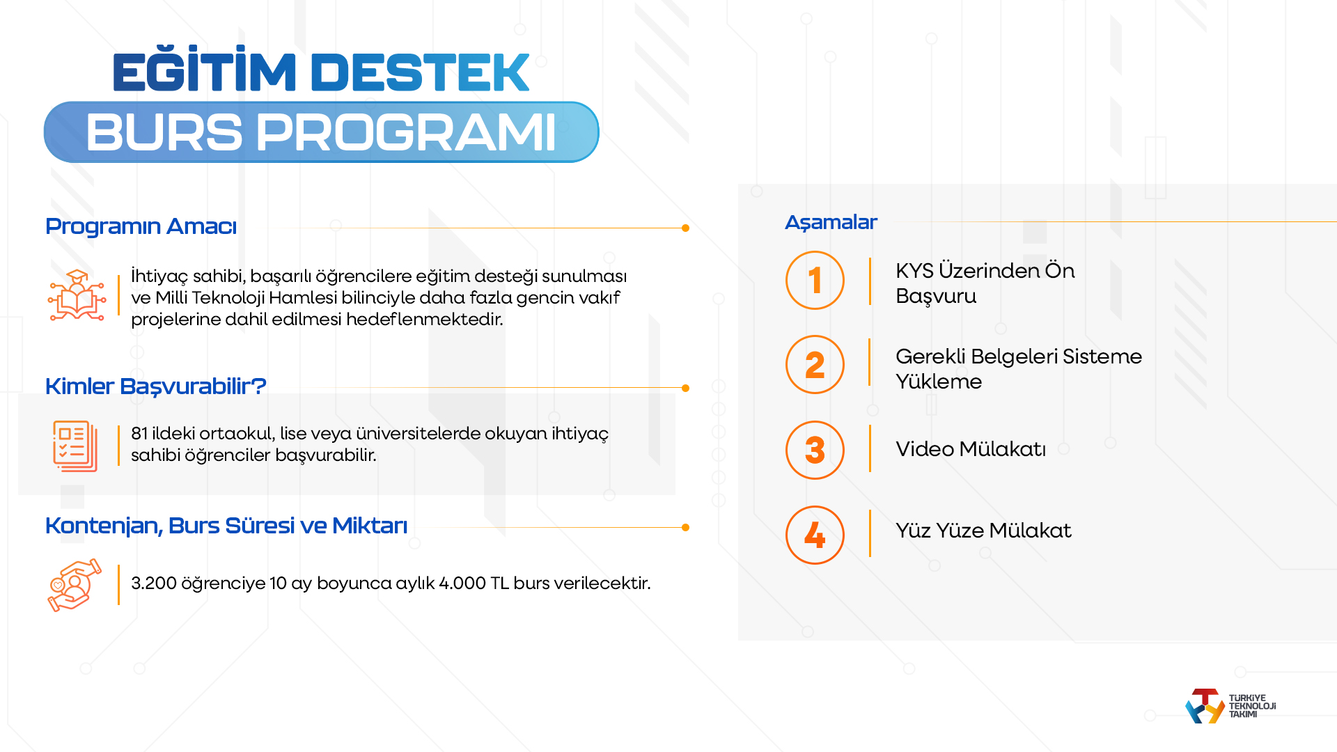 Türkiye Teknoloji Takımı Vakfı (T3 Vakfı) tarafından yürütülen program kapsamında bu yıl 5000 öğrenciye burs desteği verilecek.